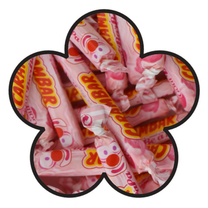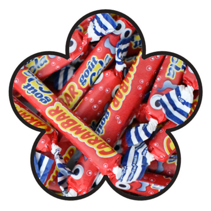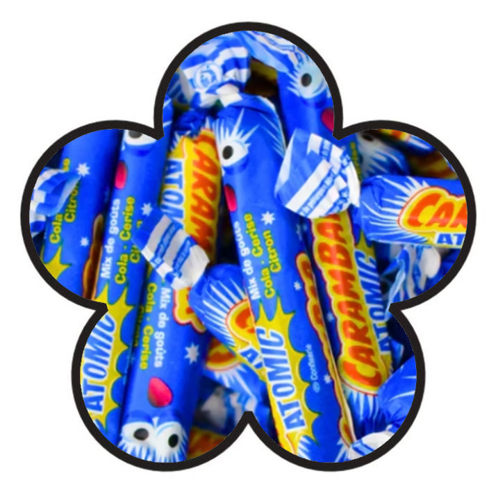 Ingrédients: Sirop de glucose, sucre, huile de coprah hydrogénée, acidifiant : acide citrique, gélatine, arômes, émulsifiant : E471, colorants : E104, E129, E133.