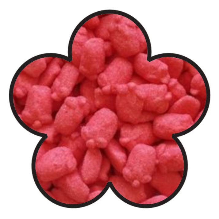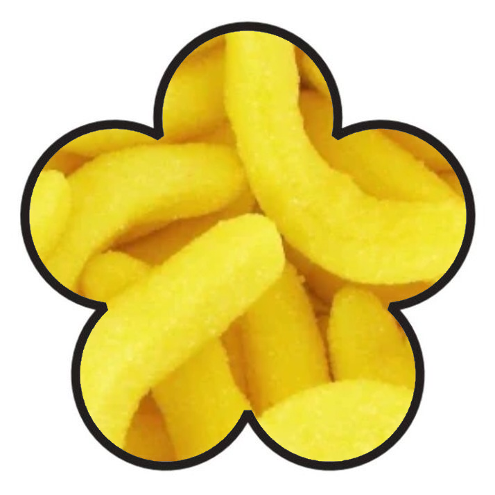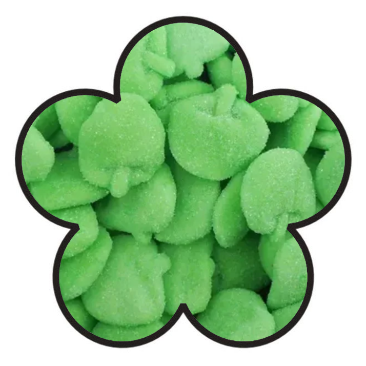 Ingrédients: Sirop de glucose, sucres, eau, gélatine de bœuf halal, amidon modifié de pomme de terre, acidifiants (E330, E270), pectine, arôme artificiel, colorant (E100).