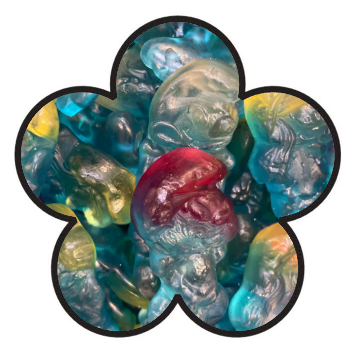 Ingrédients: Sucres (glucose, sucre), gélatine, amidon modifié de maïs, acifiant (acide citrique), amidon de maïs, pectine, arôme artificiel, huile de palme, agent d'enrobage (cire de carnauba, cire d'abeille), colorants (E102*, E129*)